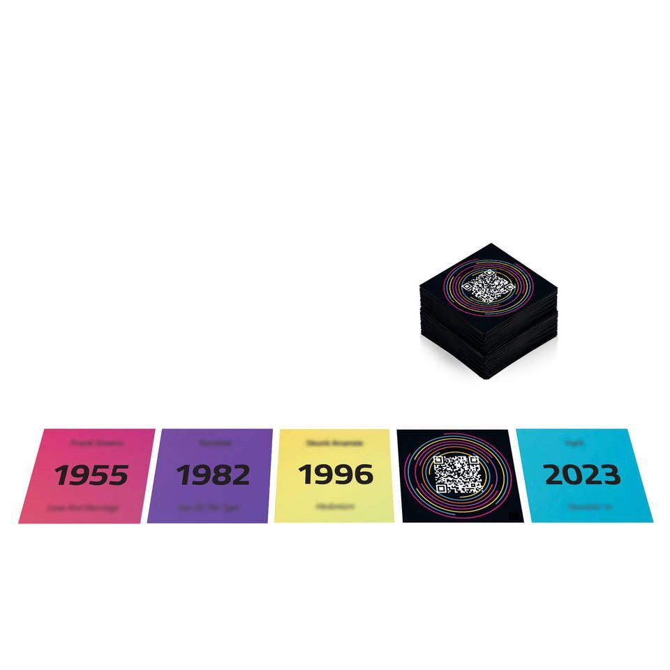 - Bevat 150+ muziekkaarten en de gratis Hitster-app